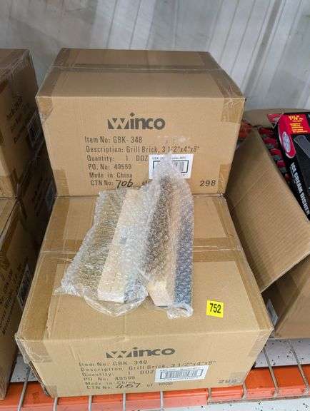 LOT 752 - Lot of 36 Winco grill bricks and two 8" brass brush/scrapers