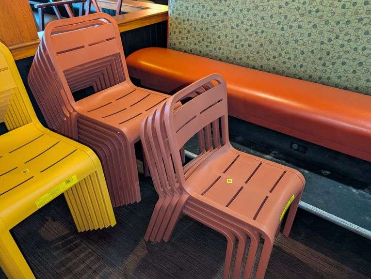 LOT 962 - Lot of 12 Grosfillex pastel red outdoor chairs