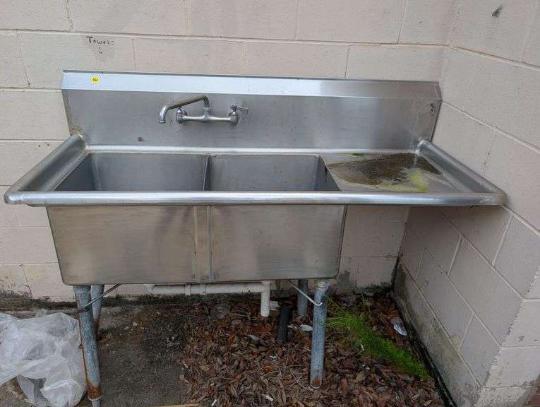 4'10" wide, 24" deep, 37" tall on front edge, 45" tall to backsplash. Damaged legs are in need of repair.