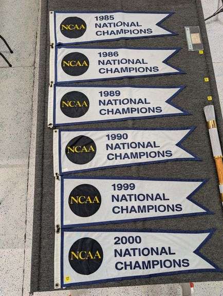 Set of 6 polyester replica championship flags. Each measures 37" by 12"