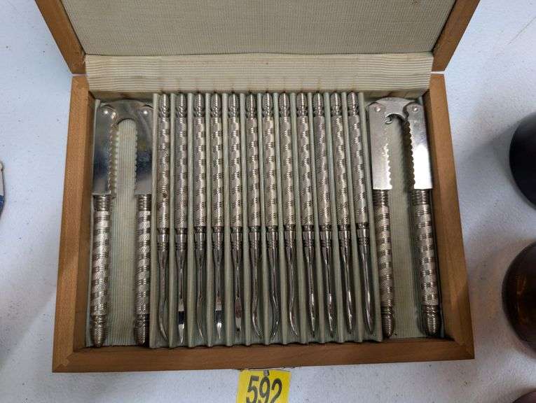 LOT 592 - Vintage nutcracker and pic/cleaning set in wooden box