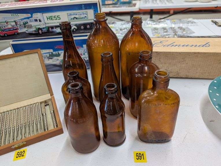 LOT 591 - Lot of 9 vintage brown glass bottles