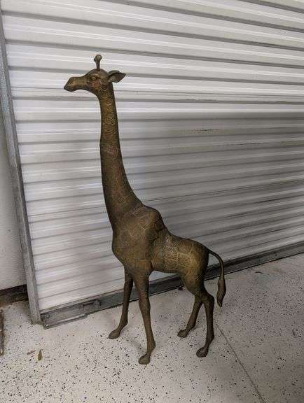LOT 573 - 4' tall, 21lb brass giraffe. Make unknown
