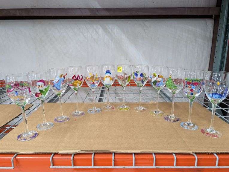 LOT 532 - Set of 12 hand-painted Christmas theme wine glasses