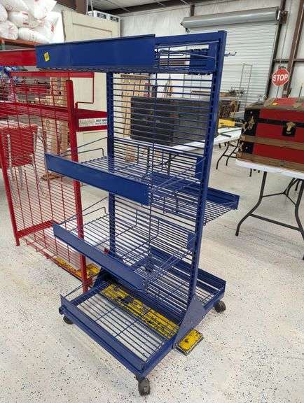 57" tall, 24" wide. Shelves are 24x14. On casters. Includes 6 pegs as well. Adjustable and modular