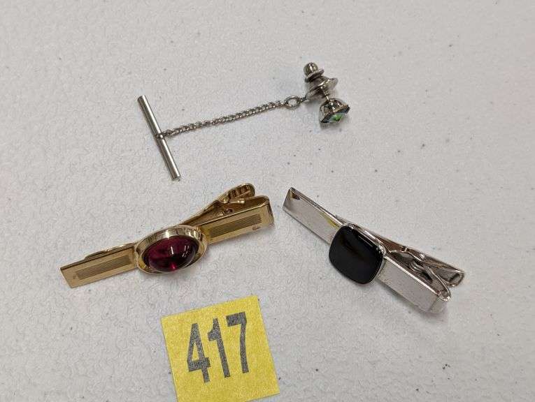 LOT 417 - Anson Gold Filled and Lamure Sterling Tie Clasps