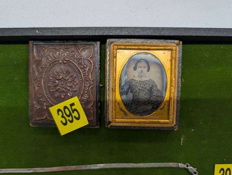 LOT 395 - Antique amber type picture in case. 2 1/2"x3"