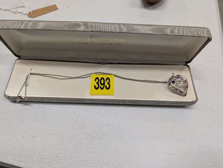 LOT 393 - Signature sterling silver "Mom" heart necklace with various color stones.